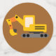 This design features four classic construction trucks in bold yellow arranged together on a brown and black background. It includes other construction items like guard rails and traffic cones and black and yellow traffic stripes. We have you covered for a construction trucks themed party: supplies, decor, delicious treats and meaningful personalised gifts!