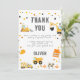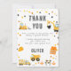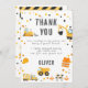 Construction trucks road signs birthday party thank you card for a cute fun thanks. Customise names, dates, and information.