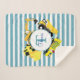Construction Trucks Blue Stripes Monogram Sherpa Blanket