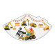 This design features four classic construction trucks in bold yellow arranged together on a brown and black background. It includes other construction items like guard rails and traffic cones and black and yellow traffic stripes. We have you covered for a construction trucks themed party: supplies, decor, delicious treats and meaningful personalised gifts!