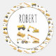 Construction Trucks School Custom Name Classic Round Sticker