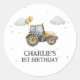 Construction Trucks Simple Minimalist Birthday Classic Round Sticker
