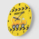 Cool custom construction concrete mixer party wall clock for a child who loves yellow construction vehicles in black and yellow. Fun vehicle bedroom decor for a little boy who loves cars and trucks. Customise with your kid's name under the black and yellow caution tape for a boys room.