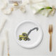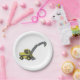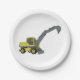 A green construction vehicle with a digger arm extended. This design looks really effective on these Paper Plates