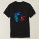 I give wanted to give this a 4 instead of a 5 because these Basic DARK T0shirts run unexpectedly SLIM or Narrow. Which is great if you do not have a potbelly, but I have a paunch. It isn't the shirt's fault that I've got a beer belly. The design and shirt itself is a quality cotton shirt. The color is more of a deep purple, but still a very pretty color. The Basic DARK T-shirts run a bit SLIMMER than the Basic Ts. The neck is a fraction narrower (or seems to be narrower) also. I'm a paunchy middle-aged woman and my neck is 12 inches (31cm) thick and the neckline fell about the same as in the photo of the man, and I had the desire to tug it a bit. So if you're a thick necked man or like loose shirts, be aware these are slimmer shirts. Once I get rid of my lockdown paunch it'll look great. The shirt washed well in cold water with no apparent bleeding. We don't have a dryer, so it hung dry. Did not shrink. Love the colors and the design. The design looks smaller on my shirt than it does on the model on-line. But still, it looks good on the shirt. The printing looks as it does on the model, just the size seems fractionally smaller. Washed garment in cold water, hung dry and design appeared unaffected.