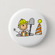 A stick figure construction worker in a yellow hard hat peeks up from the manhole!