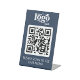 Enhance your restaurant's dining experience with the Contactless QR Code Restaurant Menu With Logo Pedestal Sign. This navy blue, customisable tabletop sign features your restaurant's logo and a scannable QR code for seamless menu browsing and ordering. Designed for modern, contactless convenience, this sign is an elegant solution for minimising shared surfaces while offering a stylish and functional display.