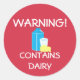 Contains dairy food allergy alert stickers. Label foods with a dairy warning. Great for food allergies or vegetarians. Great for bakesales, pot lucks and around the house to put on snacks or baked goods. Designs by Lil Allergy Advocates www.lilallergyadvocates.com