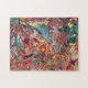 This puzzle features a contemporary abstract work from the Swanagan collection. Layers of crimson, gold, and electric teal sweep across the surface in expressive movement—capturing the moment emotion ignites into form.