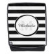 A contemporary black and white perfect stripes backpack. Personalise this girly pattern by adding your name and monogrammed initial. This preppy monogram design is part of the Black School Essentials Summer Colour Collection.