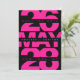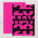 This contemporary save the date card features a hot pink and black colour scheme. Bold sans serif lettering displays the date of the wedding. A smaller font overlay displays the couple's first names, location, and that an invitation will follow. Browse my collection for the matching suite. ••• For more stylish wedding suites, visit my store Zazzle.com/EventsByJessicaAmber ••• For custom orders, message me on Zazzle