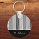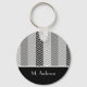 Contemporary Black White Chevron Stripes and Name Key Ring