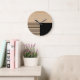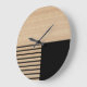 Contemporary Block Stripes Pattern On Faux Wooden Large Clock