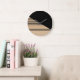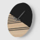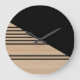 Contemporary Block Stripes Pattern On Faux Wooden Large Clock