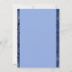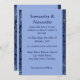 This wedding invitation features a light blue background, edged by a patchwork pattern in mainly shades of blue. Pretty and contemporary.