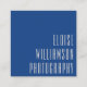 A sleek and professional square business card designed for photographers and creative professionals. Featuring a deep blue background with contemporary elongated typography in white, this design exudes confidence and sophistication. The back presents essential contact details in a clean and structured layout. Perfect for portrait photographers, wedding photographers, and visual artists who want a bold yet minimal brand identity.