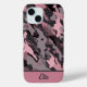 This edgy and trendy phone case seamlessly merges vibrant pink and sleek grey tones, creating a unique camouflage pattern that stands out while blending in.