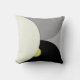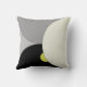 Trow pillow with four over-lapping large circles in shades of grey, black, and off-white with a touch of yellow. Pattern is flipped on the reverse side for continuity of colours.