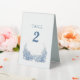 This exquisite wedding table sign, embodies the opulent charm of the baroque Victorian style. The table sign features a smooth dust blue ornate design, adorned with intricate floral patterns and delicate swirls, evoking a sense of timeless elegance. The typography, although relatively modern, maintains clean lines and a sleek appearance, adding a contemporary touch to the overall design.