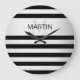 Contemporary Faux Silver Ombre Stripes & Black Large Clock