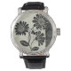 © Daphne Brissonnet / Wild Apple. Black and white image of flowers in full bloom. The image comes with a floral patterned background in black and off-white colours.