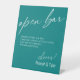 Contemporary Handwriting Funny Open Bar Teal Pedestal Sign
