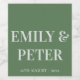Contemporary Minimalist Modern Sage Green Wedding Wine Label . The design has a sage green background with text written in pretty font in white and space to add the names of the couple and the wedding date . This cute elegant wedding labels can be easily customised by changing the names and the date.
