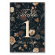 Contemporary Modern Black Floral Wedding Table Number