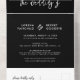 All in one! Economical and eco-friendly, this seal and send invitation includes a RSVP postcard. A bold and trendy typography for your wedding stationery, simple yet elegant with a black and white theme. Fully customisable: you can change the colours of the font and background if needed.