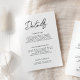 Unfold a night of unforgettable celebration with this wedding details card! Black and white elegance meets modern hand lettered calligraphy, creating a timeless guide for your guests. Separated sections for transportation and accommodation ensure a stress-free arrival, letting them focus on celebrating your happily ever after.