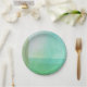 Contemporary Modern Green Lines Watercolor Artist Paper Plate