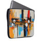 Contemporary Orange Blue Geometric Abstract Lines Laptop Sleeve