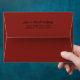 A contemporary artistic look for your holiday cards and mailings, this unique envelope design displays a gorgeous abstract painted pattern in deep red, forest green, gold, tan and ivory, covering the inside of the envelope with a matching deep cranberry red solid colour on the outside. A text template is included on the back flap to personalise with your return address.