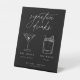Contemporary Chic minimalist signature drinks, black wedding sign. Features, Espresso Martini and Cocktail with fruit accent.