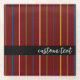 Modern contemporary stylish striped design in rich deep red colours. This elegant vertical striped coloured lined pattern against a deep maroon red. The stripy lines are in a repeating pattern and are green, blue and gold in colour. There is custom text in a light colour script style, against a black colour horizontal band to personalise this, perhaps adding a name, monogram initials, or even a short message.