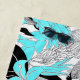Aqua and black colorway. This delicate pen and ink illustration of oversized tropical flowers, has a vintage aloha shirt look. Lilies, protea, and heliconia are growing among banana and palm leaves. Each colour way has a contrasting neutral colour against a white background and a pop colour accent.