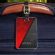 Contrast red black geometric hexagons background luggage tag