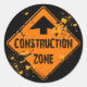 CONTRUCTION ZONE ROAD SIGN CLASSIC ROUND STICKER