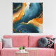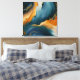 This refined abstract artwork captures the quiet luxury of fluid motion, where deep ocean blues meet molten gold in a slow, elegant dance. Smooth, flowing shapes ripple across the composition like polished stone, liquid metal, or underwater currents, creating a sense of depth and natural harmony. The gold accents appear organically embedded within the blue tones, adding warmth, richness, and a subtle sense of opulence.