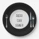 Electronic Alexa command to cook dinner on white plate with silverware.