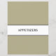 Banner displays custom text shown with the text “APPETIZERS” in simple font. You can customise by changing the text using the fields provided or use the "message" button to contact the designer for help.