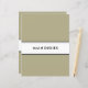Custom double sided cookbook divider page for a coordinating recipe binder; one design of a matching set. Features a simple modern minimalist design in a modern sage green colour palette with customisable text presented on a coordinating white banner with black accents