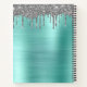 Silver and Aqua Teal Blue Faux Sparkle Dripping Glitter Brushed Metal Monogram Name Cookbook - Recipe Book This makes the perfect sweet 16 birthday, wedding, bridal shower, anniversary, baby shower or bachelorette party gift for someone that loves glam luxury and chic styles.