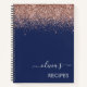 Cookbook Rose Gold Pink Navy Blue Glitter Monogram Notebook