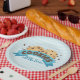 Are you a cookie bakery that bakes irresistible, homemade cookies in a variety of mouthwatering flavours, and want to serve them on a plate? These paper plates include the classic chocolate chip cookie with signature blue stripes that adorn the background of the design. Let your customers know they will be happy with every bite, with a branded plate that you can customize with your business name. Also great for parties involving cookie buffets or cookie lovers who want to customize this plate for their party.