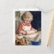 Designed by Susan Epps Oliver. Vintage image of a small girl rolling out cookie pastry for Christmas. She has a plate of delicious looking completed cookies nearby on the table and cookie cutters too. Behind her is a Christmas tree.