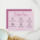 A soft dusty pink cookie care instructions design created for small bakeries that value clarity and warmth. Clean icons, gentle script typography, and a calm layout make storage guidance easy to understand while keeping a friendly, professional look. Thoughtfully designed to build trust and care, this insert adds a polished, heartfelt finishing touch to bakery packaging. 🍪🌸