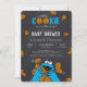 This charming baby shower invitation features Cookie Monster from Sesame Street against a playful chalkboard-style background. Surrounded by cookies and cheerful details, the design brings a whimsical and fun touch to your celebration. Perfect for a Cookie Monster-themed baby shower, this customisable invitation sets the tone for a joyful and memorable event.