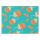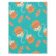 Cookies and Hot Cocoa Christmas holiday tablecloth, great for using all winter, features a bright aqua blue polka dotted background with chocolate chip cookies and striped mugs of steaming hot cocoa with marshmallows! This fun and festive holiday tablecloth will brighten the mood and the room!