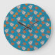 Cookies, buns: blue background pattern large clock